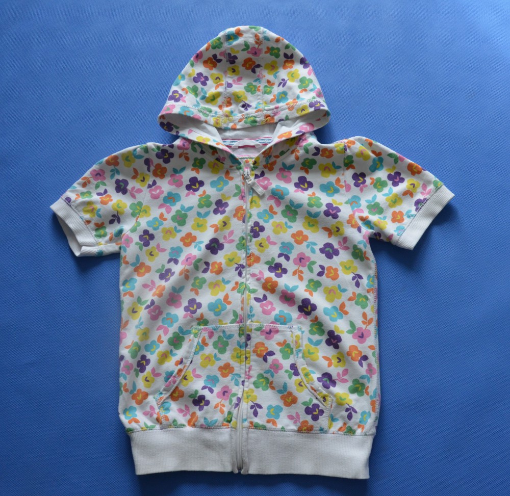 BIAŁA BLUZA Z KAPTUREM Z KRÓTKIM RĘKAWEM W KWIATKI ZAPINANA NA ZAMEK FIRMY NEXT