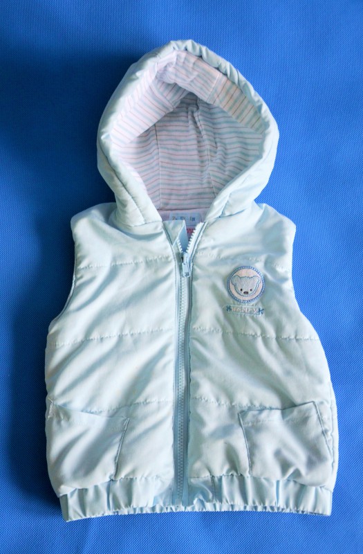 BŁĘKITNY BEZRĘKAWNIK Z KAPTUREM