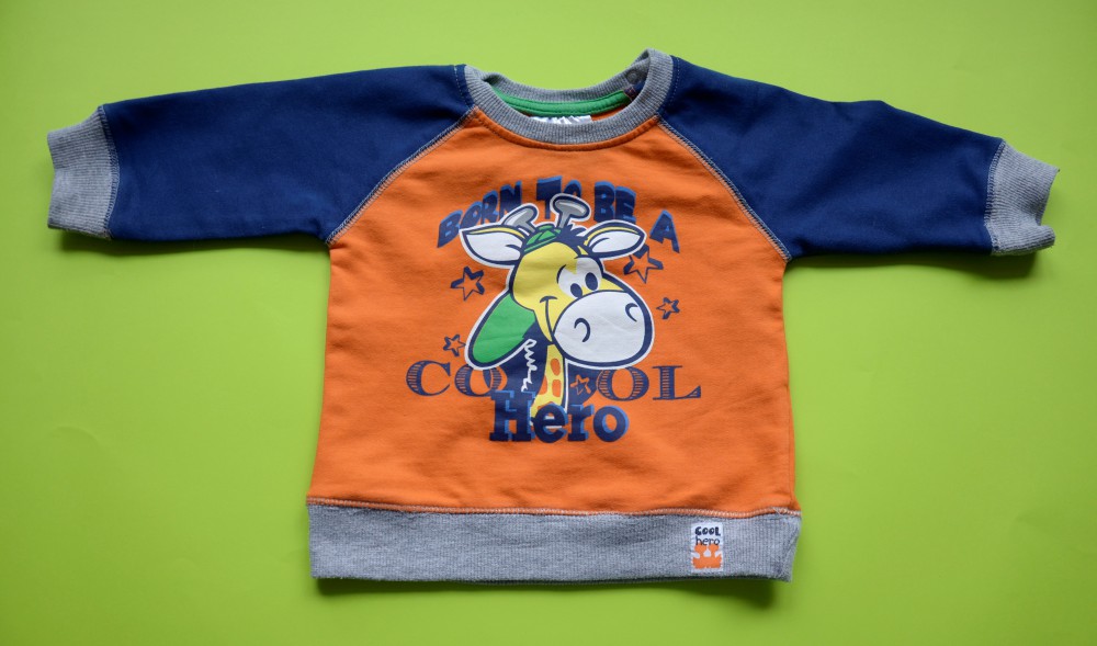 ROZMIAR Z METKI: 80 CM, 9-12 M-CY (szerokość mierzona od pachy do pachy ok 29 cm, długość rękawa od pachy ok 18 cm, długość całkowita ok 34 cm)