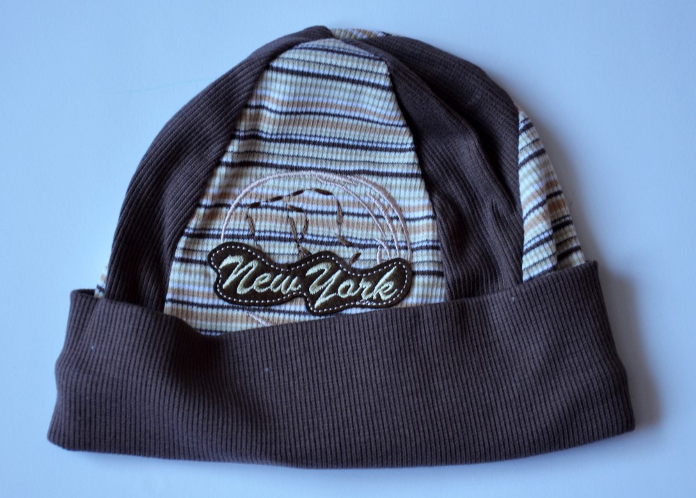WYMIARY: (szerokość czapeczki bez rozciągania - 22 cm x 2, wysokość czapeczki - 16 cm)