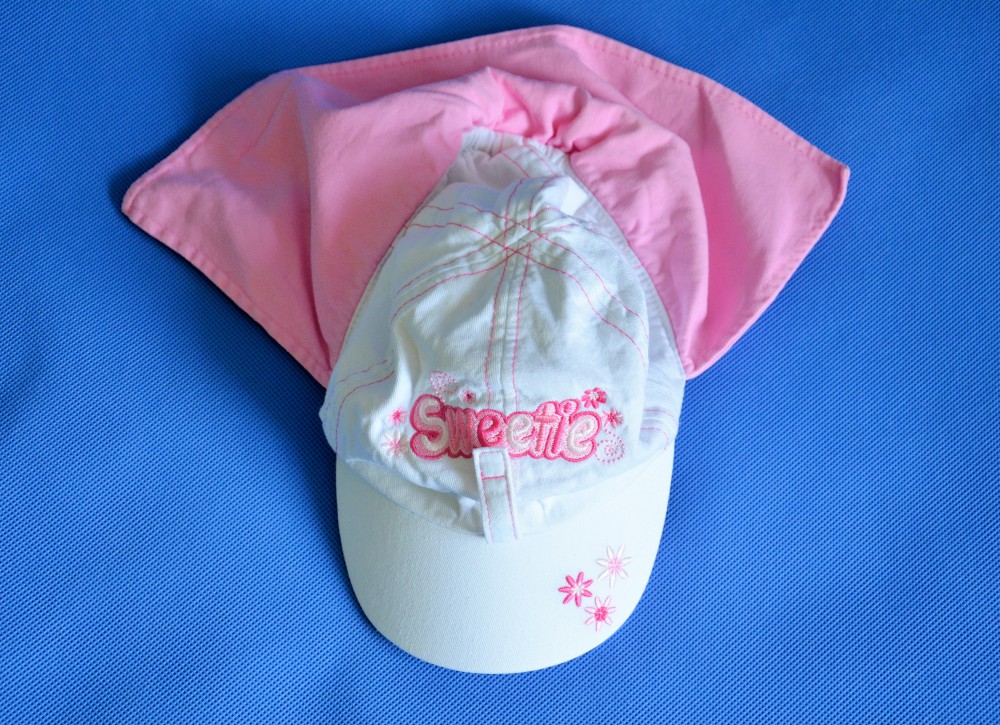 BIAŁO-RÓŻOWA CZAPECZKA Z DASZKIEM