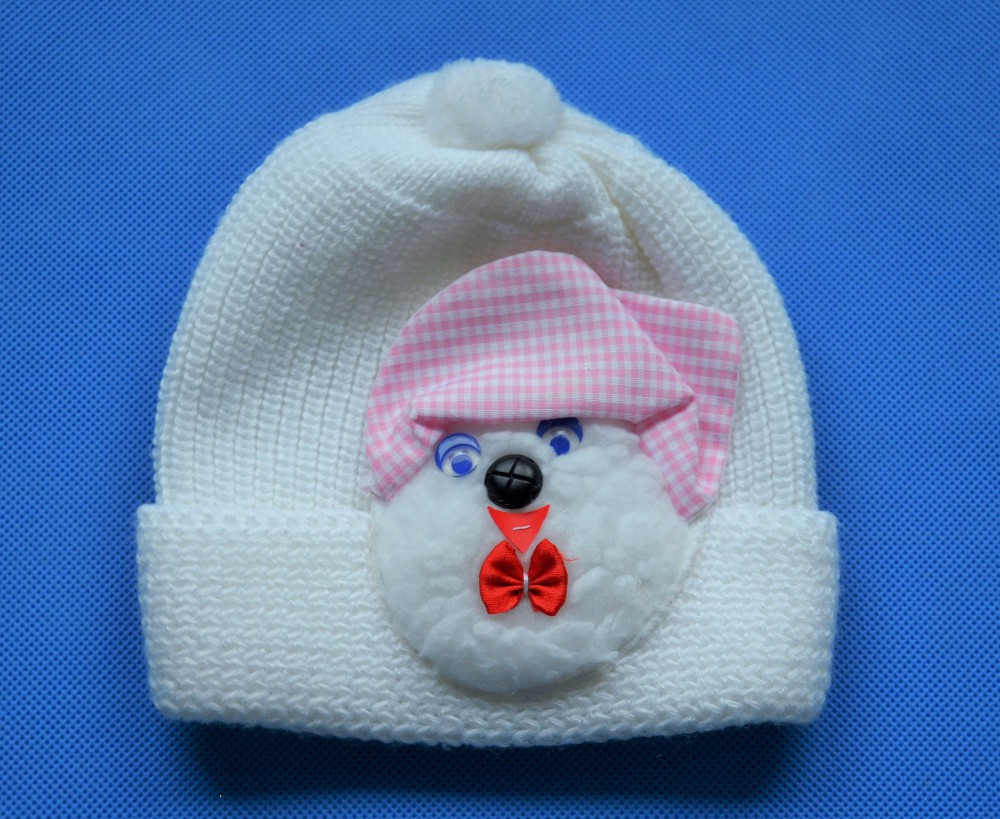 BIAŁA ZIMOWA CZAPKA Z MISIEM