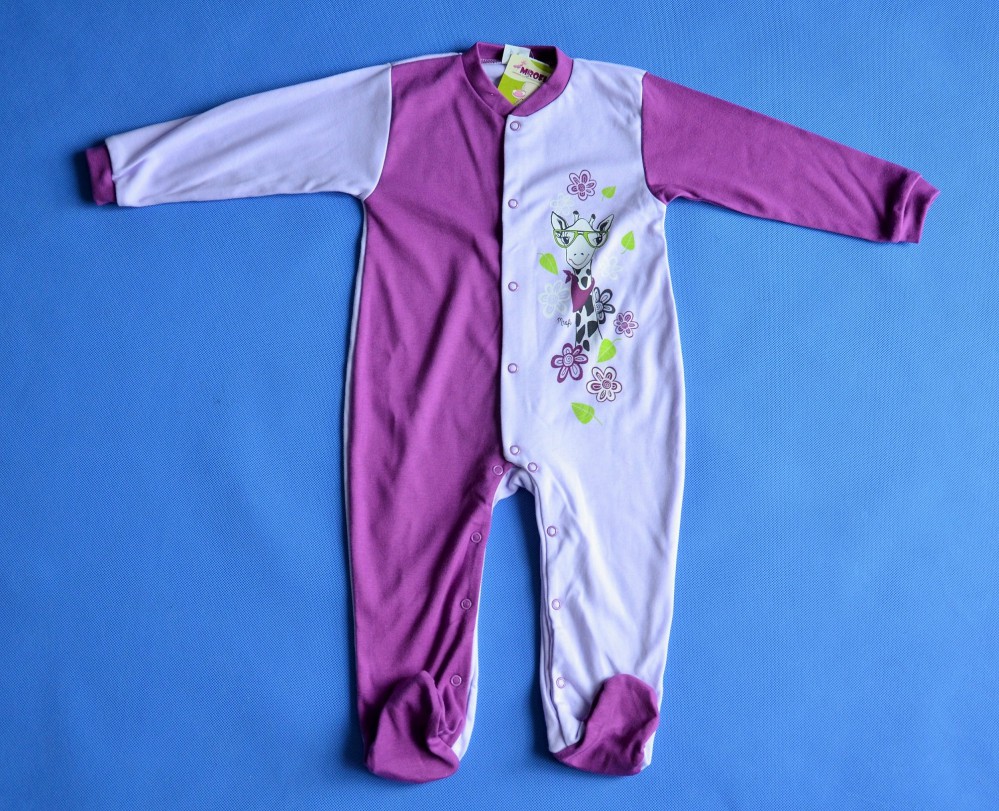PRZEŚLICZNY FIOLETOWY PAJACYK Z ŻYRAFKĄ POLSKIEJ FIRMY MROFI