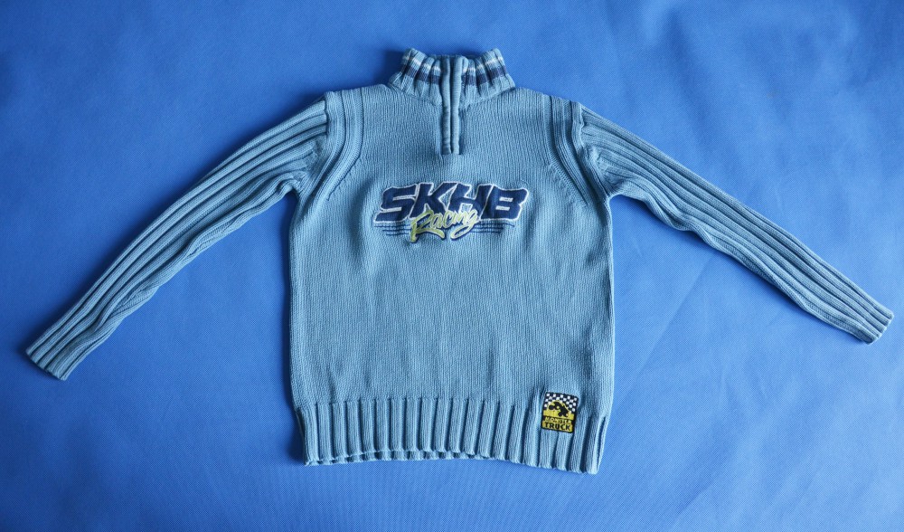 NIEBIESKI SWETEREK WKŁADANY PRZEZ GŁOWĘ