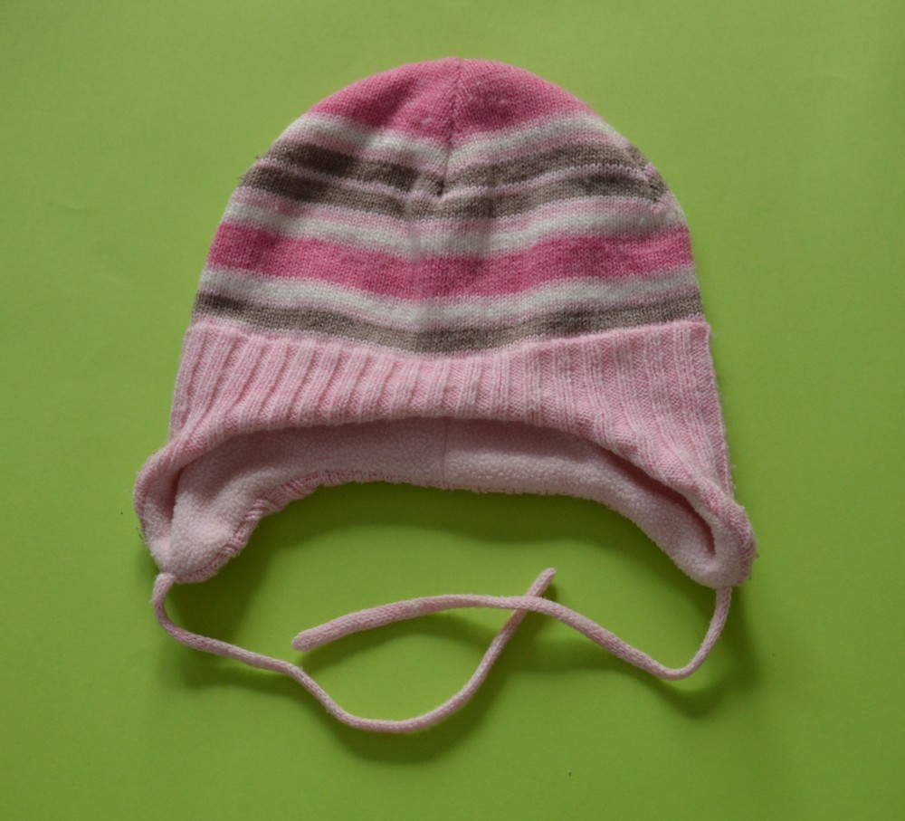 ZIMOWA RÓŻOWA WIĄZANA CZAPECZKA W PASKI FIRMY H&M
