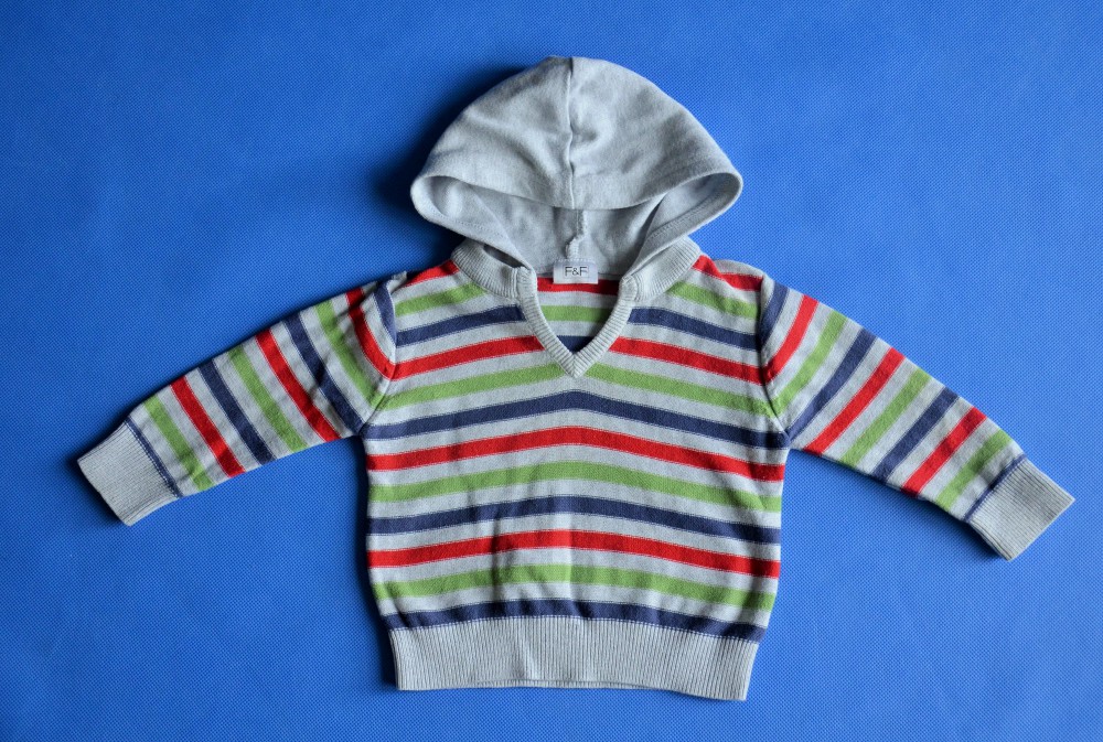 SWETER WKŁADANY PRZEZ GŁOWE Z KAPTUREM W PASKI