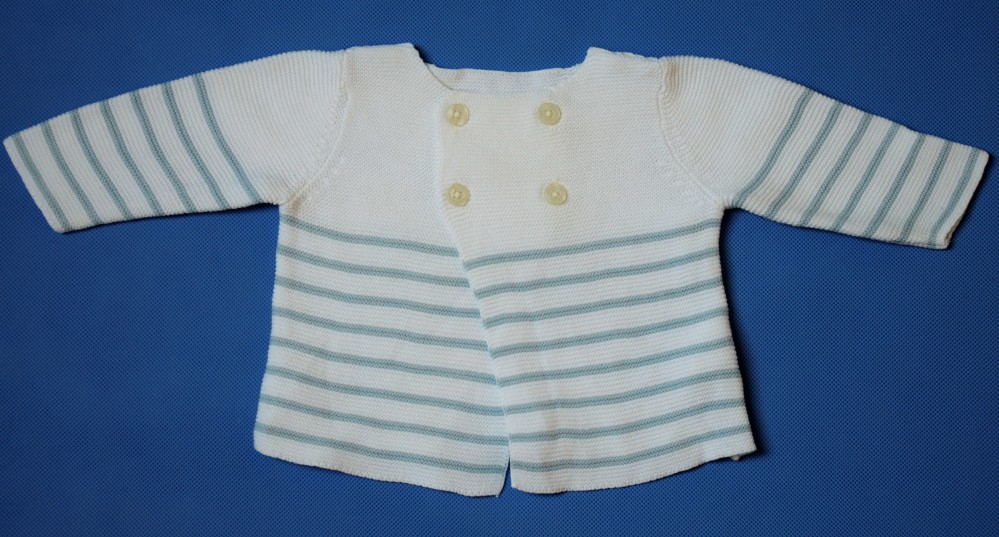 BIAŁY SWETEREK W NIEBIESKIE PASECZKI FIRMY M&S