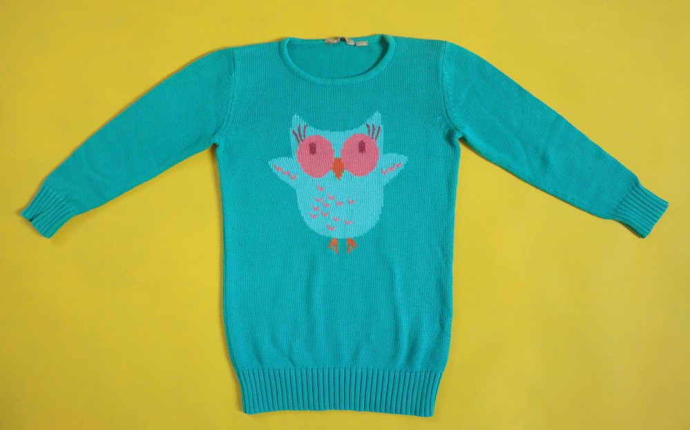 TURKUSOWA SWETERKOWA TUNIKA Z SÓWKĄ