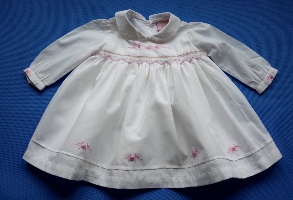 BIAŁA ELEGANCKA SUKIENECZKA Z KOŁNIERZYKIEM I HAFTOWANYMI KWIATUSZKAMI