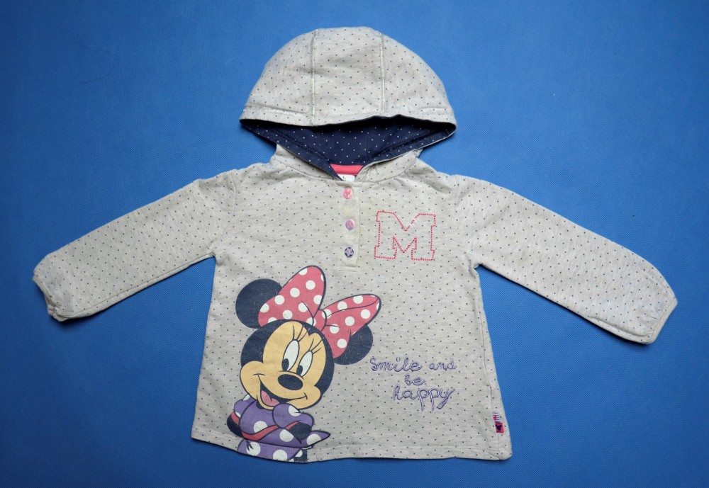 SZARA BLUZA W KROPKI Z MINNIE ZAPINANA NA 3 GUZIKI Z KAPTUREM