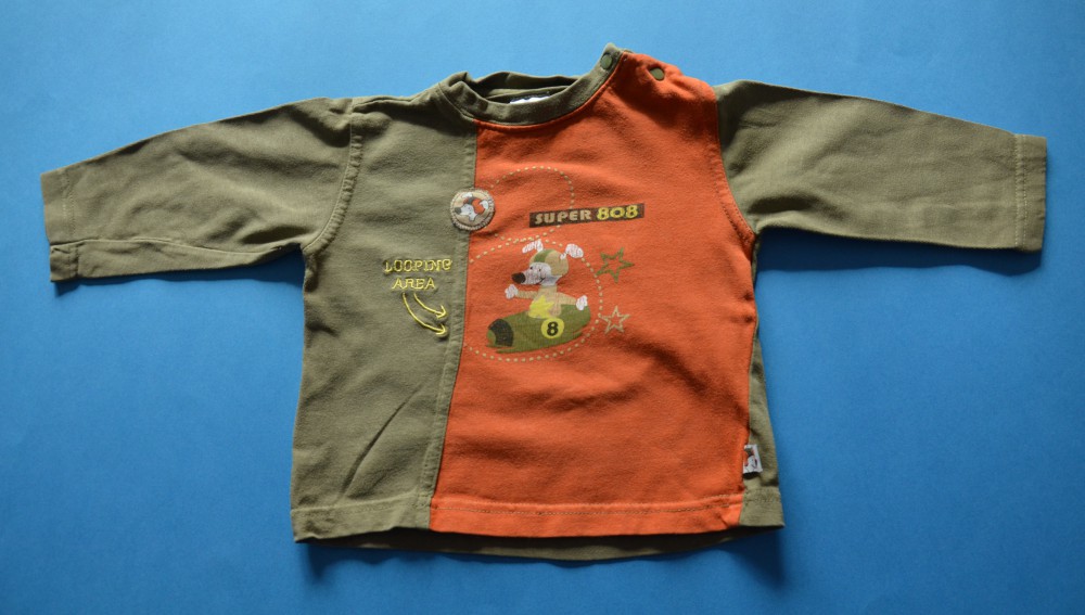 ROZMIAR Z METKI: 74 CM (szerokość mierzona od pachy do pachy ok 28 cm, długość rękawa mierzona od pachy ok 18 cm, długość całkowita 30 cm)