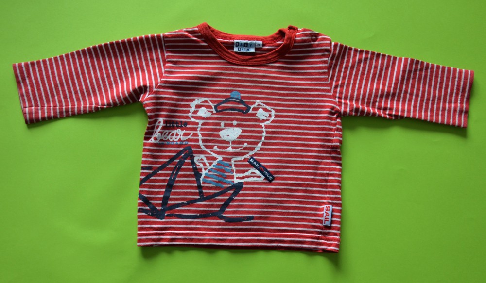 CZERWONA BLUZKA Z DŁUGIM RĘKAWEM W PASKI ZAPINANA NA 2 NAPKI
