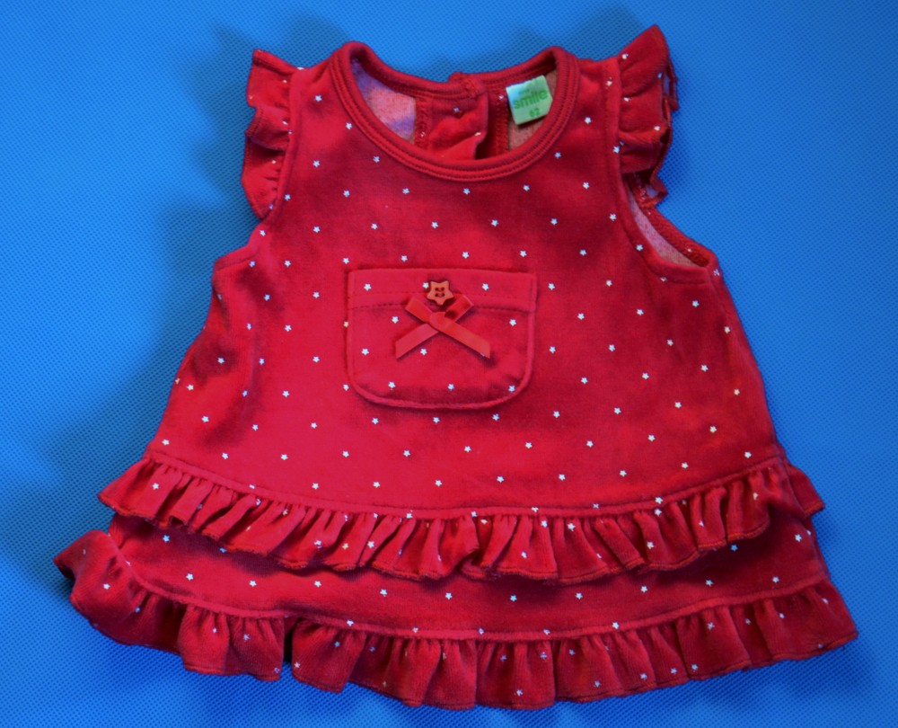 CZERWONA WELUROWA SUKIENECZKA W GWIAZDECZKI Z KIESZONKĄ