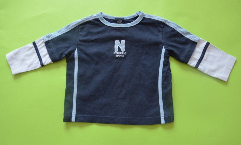 ROZMIAR Z METKI: 80 CM, 9-12 M (szerokość mierzona od pachy do pachy ok 28 cm x 2, długość rękawa mierzona od pachy ok 20 cm, całkowita długość ok 34 cm)