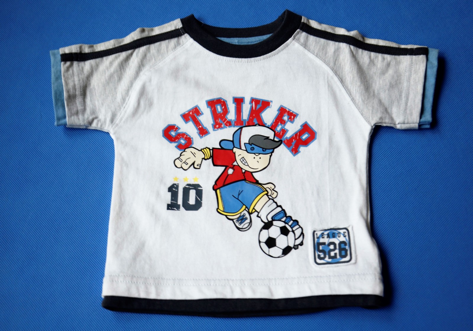 BIAŁA KOSZULKA Z PIŁKARZEM I SZARYM KRÓTKIM RĘKAWKIEM FIRMY EARLY DAYS