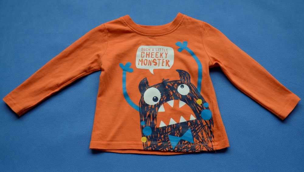 ROZMIAR Z METKI: 80 CM, 12-18 M-CY (szerokość mierzona od pachy do pachy ok 27 cm, długość rękawa mierzona od pachy ok 20 cm, długość całkowita ok 32 cm)